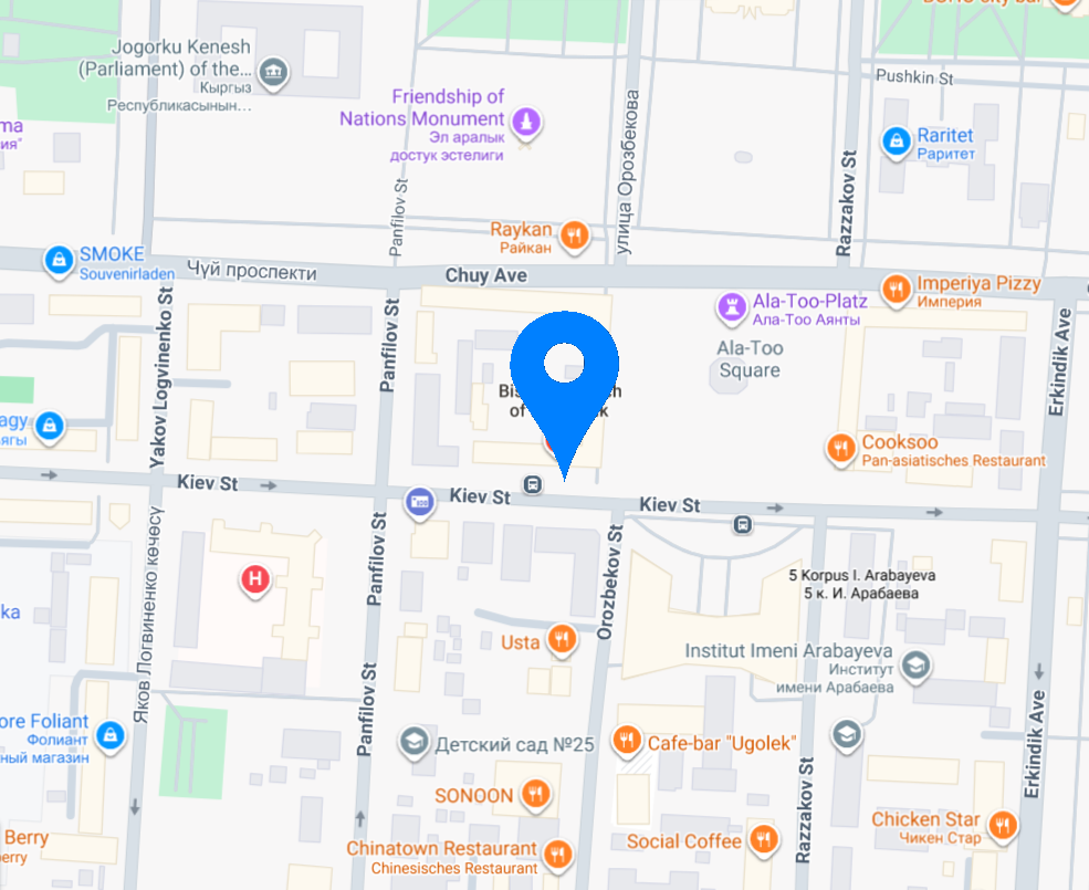 Кырrыз Ресnубликасы, Бишкек, Биринчи Май району, Киев Кечесу, 77, Офис 602